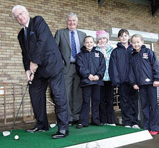 Teeing off with the pupils, Council Leader Ali Thomas, says, “Sporting projects like this help to keep young people active and take up exercise that, in turn, will bring them better health in the future.