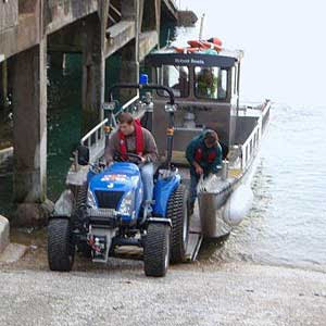 Because of the inaccessibility of the station, due to the width of the steps, the only way to deliver the tractor was by sea. This was accomplished with the assistance of Derick Rees and his landing craft.