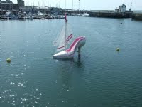 To address the balance between the male sailing world and the underlying female influence Megan took logic to its extreme and created the ultimate female ship, with a stiletto as a hull and light netting for sails.